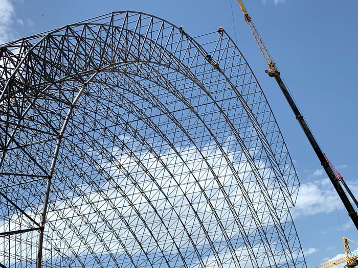 (2)网架加工前应对现场尺寸进行复测,确认无误后方可进行加工、安装;网架制作、运输、安装应遵守《空间网格结构技术规程》JGJ7-2010、《钢网架巩义螺栓球节点》JG/T 10-2009、《钢网架巩义螺栓球节点用高强度螺栓》 GB/T 16939-2016、《巩义钢结构巩义工程巩义施工规范》 GB50755-2012、《巩义钢结构巩义工程巩义施工质量验收标准》 GB50205-2020。